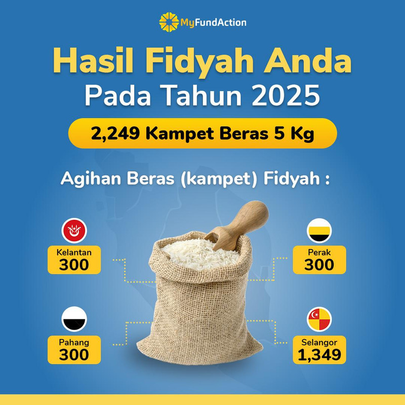Alhamdulillah hasil fidyah tahun lepas telah diagihkan di seluruh Malaysia.