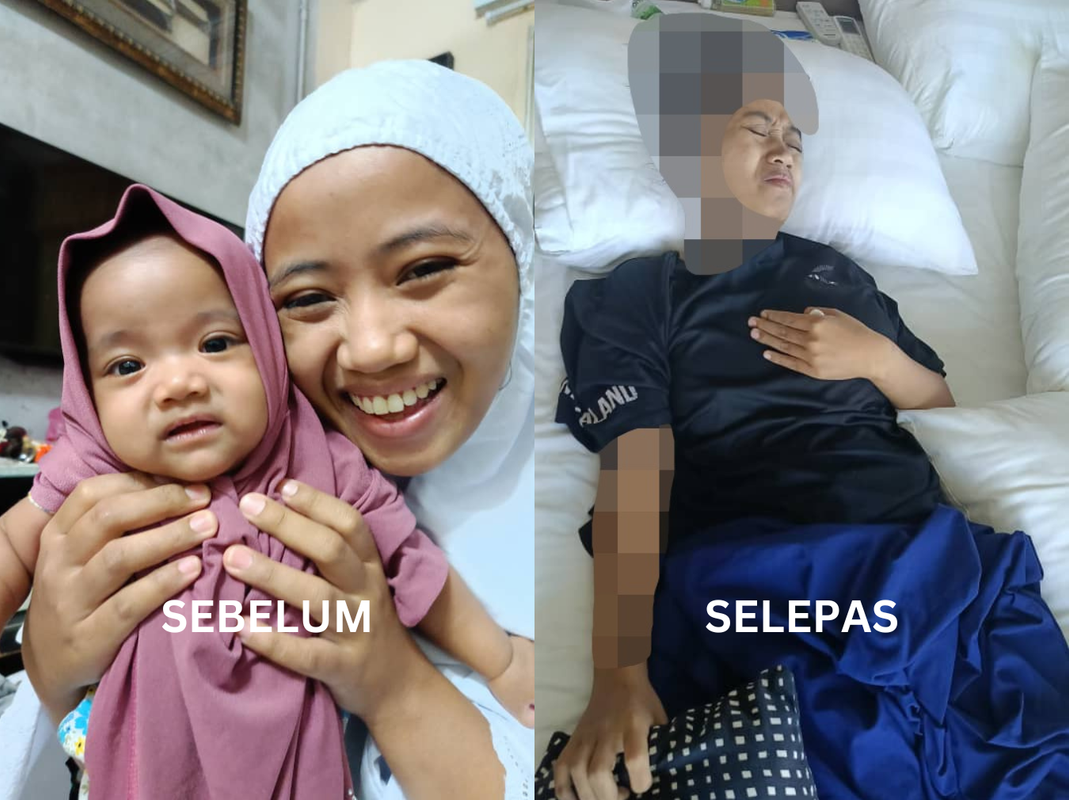 Sejak Disember lalu, Bella sudah tidak mampu mengangkat tubuhnya sendiri apatah lagi menggendong anaknya, Ameera yang kini baru berusia 9 bulan.